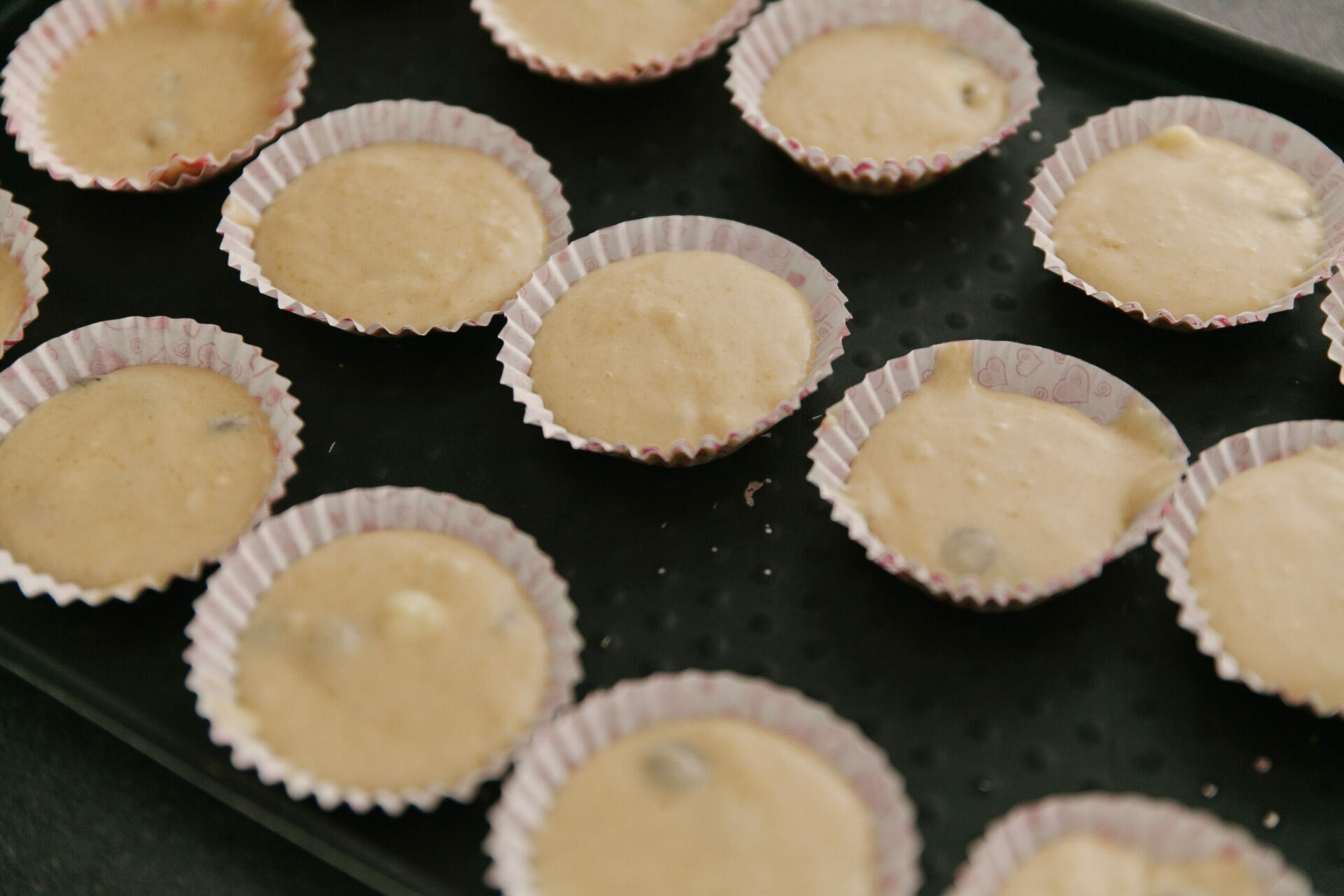 Verser dans des petites caissettes en papier en veillant à ne pas les remplir plus qu’aux 2/3 pour éviter tout débordement à la cuisson.
