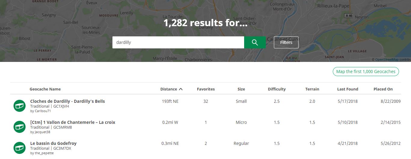 Vous tapez la ville qui vous intéresse (votre lieu de résidence, votre lieu de vacances, une région que vous avez envie de découvrir..) et le site vous propose aussitôt toutes les caches référencées dans le secteur. et il y en a énormément !